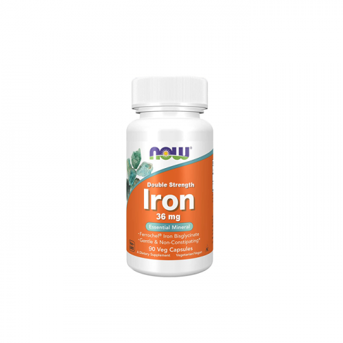 Железо двойной концентрации от компании NOW содержит в 2 раза больше железа (36 мг в капсуле), чем продукт обычного действия (18 мг в капсуле).