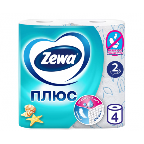 Туалетная бумага Zewa Плюс Свежесть Океана, 2 слоя, 4 рулона